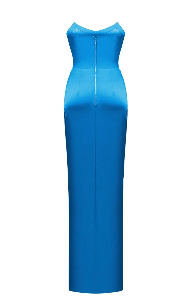 Satin corset maxi dress with draped skirt