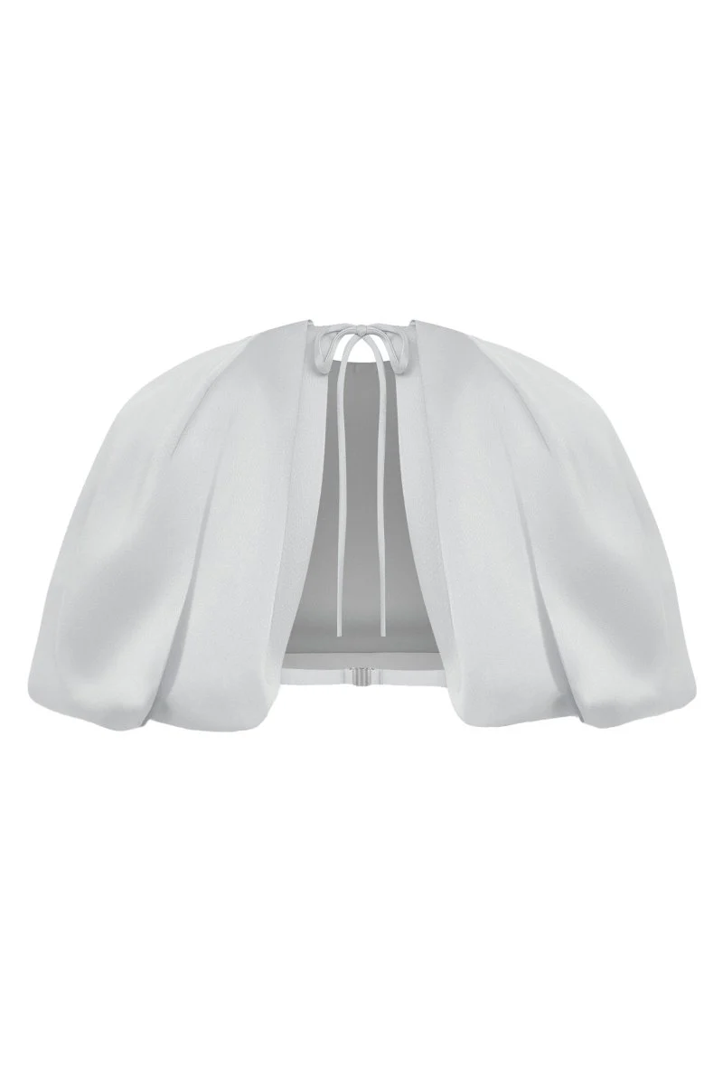 ā¢Ā Ā This cropped satin top captivates with its unique design and elegant lines. The voluminous cut creates a striking silhouette, making it a standout piece in any wardrobe. Adjustable ties at the back ensure a perfect fit and ultimate comfort. Pair it with the velvet midi skirt from the new collection for a harmonious and stylish ensemble.