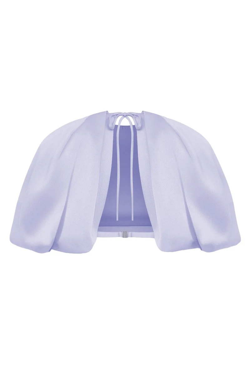 ā¢Ā Ā This cropped satin top captivates with its unique design and elegant lines. The voluminous cut creates a striking silhouette, making it a standout piece in any wardrobe. Adjustable ties at the back ensure a perfect fit and ultimate comfort. Pair it with the velvet midi skirt from the new collection for a harmonious and stylish ensemble.