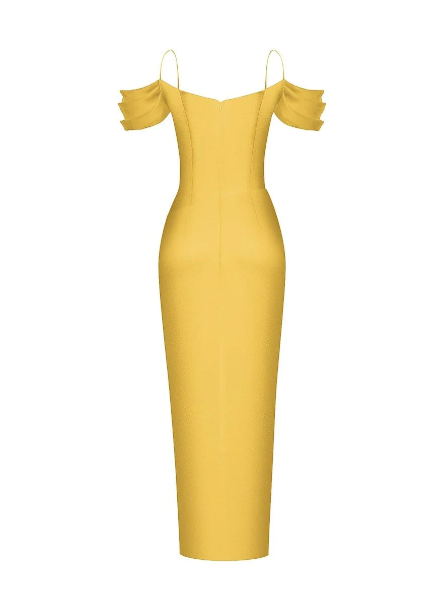 ā¢Ā Discover the flawless attire for making a remarkable impact at your upcoming event. The Satin Draped Off-the-Shoulders Long Midi Dress effortlessly fuses classic elegance with contemporary charm.